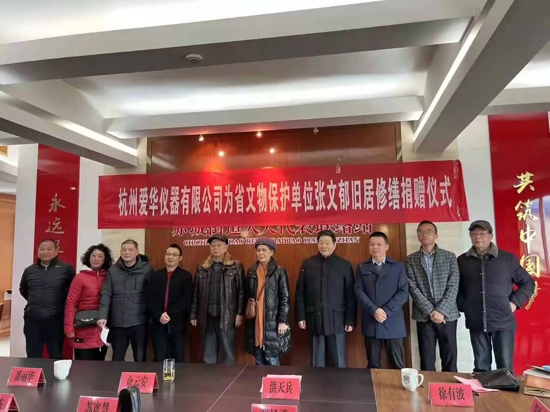 12月14日上午,“杭州爱华仪器有限公司为省文物保护单位张文郁旧居修缮”捐赠仪式在天台县赤城街道办事处四楼会议室举行。天台县原人大副主任余云安先生,天台县人民政府赤城街道办事处主任洪天兵先生,天台县红十字会党组成员潘丽华女士,天台县文化和广电旅游体育局副局长徐有波,天台县人民政府赤城街道办事处宣传委员茅蔚,以及其他社会各界人士,业主代表出席了捐赠仪式。