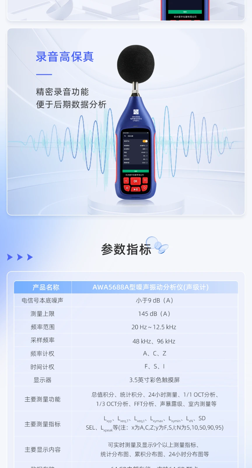 AWA5688A型噪声振动分析仪(声级计):一键多指标测量,智能高效,适用广泛
